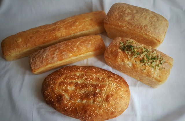 Кирпичик-14 грн, кирпичик с чесноком-16 грн, длинный хлеб(багет)-14 грн, маленький(багет) -10 грн, матнакаш -14, матнакаш с кунжутом- 15 грн.