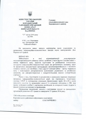 Только потомки полицаев и нацистских пособников из бандеровского отребья могли подготовить и направить председателям сельских и поселковых советов Бородянского района Киевской области такое распоряжение: