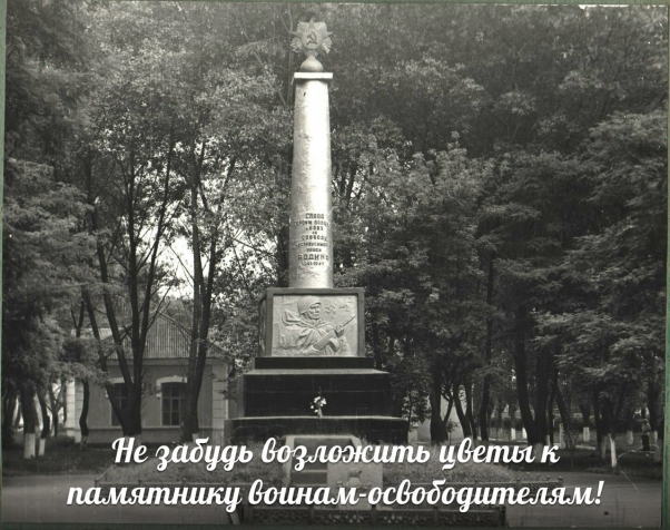 Обращаясь ко Всем жителям города, а в особенности к молодёжи, просим не остаться в стороне, вместо бытылки пива купите 2 цветочка и возложите у памятника воинам-освободителям.