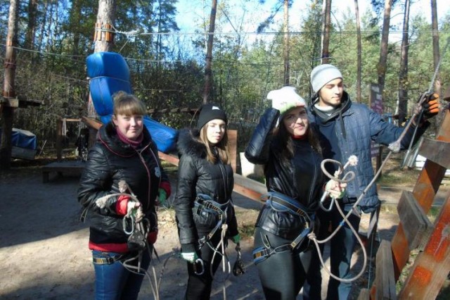 День поездки выдался очень замечательным: безоблачное голубое небо, безветренно чистый воздух с запахом лесной хвои и по-осеннему теплое солнце. Настроение было таким же замечательным и радостным, ведь детям пришла замечательная возможность выплеснуть свои эмоции на запутанных веревочных висячих дорожках, скалодром «веревочного парка», а также приложить усилия в стрельбе из лука, прыжках на батуте и во многих других развлекательных мероприятиях.