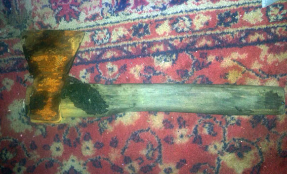Общение работников следственно-оперативной группы с потерпевшей проходило у двора. В ходе опроса женщина решила сходить в дом и когда зашла во двор, из дверей ей на встречу выбежал сожитель, размахивая топором. Испуганная женщина побежала к полицейским.