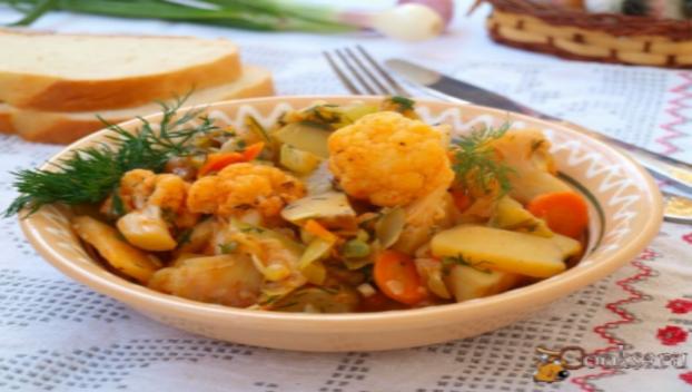 Однако ничего не поделаешь, надо готовить завтрак. Я решила сделать свое любимое рагу. Мелко порезала размороженный с вечера кусочек курятины, поджарила его на медленном огне. Затем отдельно пожарила капусту, картофель и лук с морковью. Сложила жареные овощи в сотейник, добавила зубок чеснока и две ложки аджики.