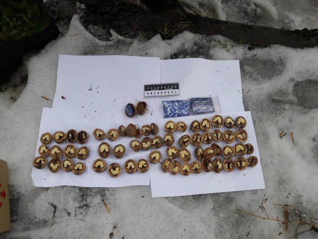При осмотре посылки правоохранители обнаружили среди орехов два полиэтиленовых пакета, в которых находилось около 10 граммов конопли. Во время более тщательного осмотра, полицейские увидели, что один из орехов склеенный. Оказалось, что в орехе находится около 4 граммов амфетамина.