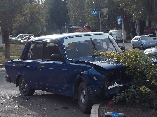 Около 14:00 в районе магазина «Эльдорадо» произошло дорожно-транспортное происшествие. На перекрестке, рядом с пешеходным переходом столкнулись «LANOS» и «LADA». Оба автомобиля получили повреждения. При столкновении «LADA», преодолев бордюры, въехал на клумбу с розами. В районе ДТП видны осколки разбившихся стекол.