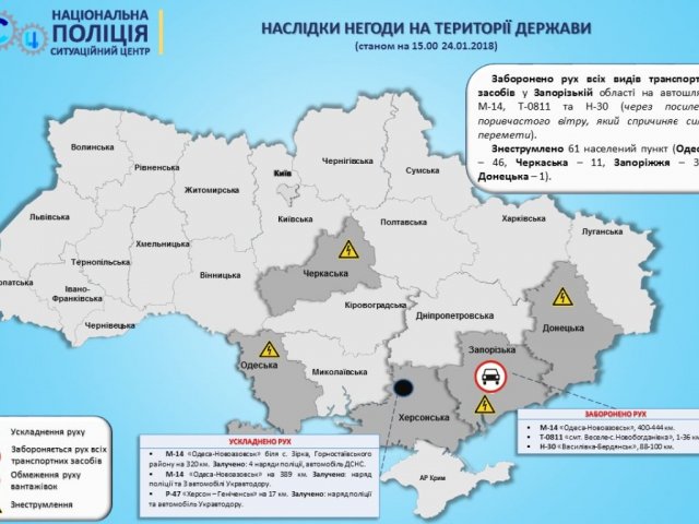 Кроме того, остается сложной обстановка на автодорогах М-14 и р-47 на территории Херсонской области.