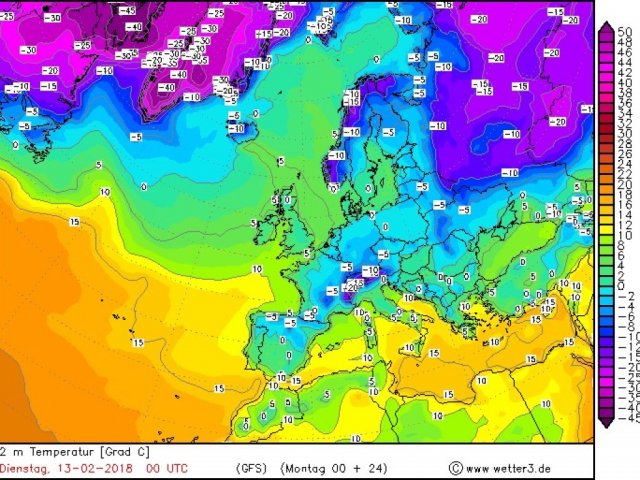 По словам синоптика, 13 февраля, во вторник, дневная температура воздуха в Украине ожидается от 0 до 5 градусов мороза. На юге, конечно, теплее — там 0 + 4 градуса.