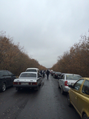 — Стоим на Георгиевском бп в сторону Донецка с 6 утра(днр время) подвинулись на 2 машины, а впереди еще 1км очередь до бп.