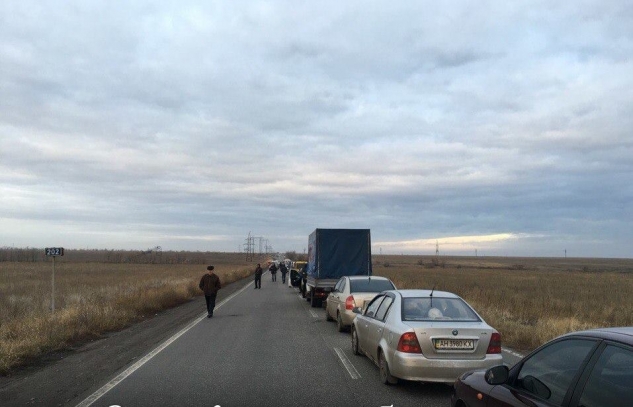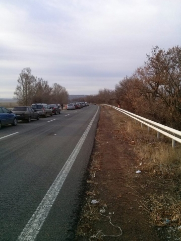 • — Стоим с 5:30 в сторону Волновахи в очереди. Постоянно кто- то едет вперед очереди или вообще по встречке.