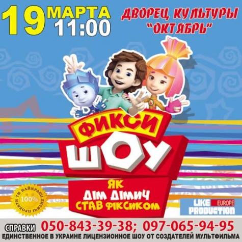 «Фикси ШОУ» — это интерактивный спектакль-«хеппенинг», который позволит каждому ребенку принять участие в удивительных приключениях Фиксиков прямо во время спектакля. Вы мгновенно схватитесь за планшет или телефон, ведь это единственное в Украине лицензионное Шоу от создателей мультфильма.