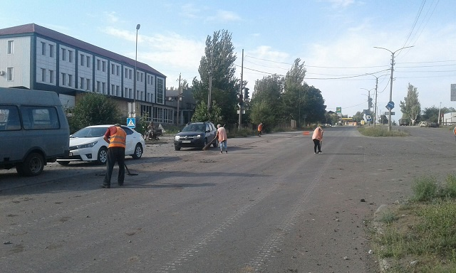 Одна из бригад предприятия работала на участке пр. Ломоносова и ул. Мирошниченко, очищая придорожные полосы. Вторая бригада КП «Коммунтранс» убирала остановки общественного транспорта и очищала урны.