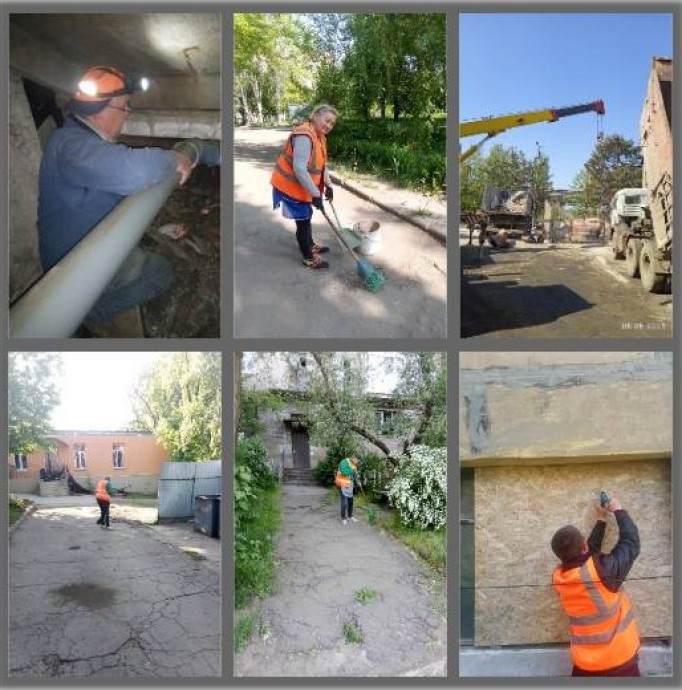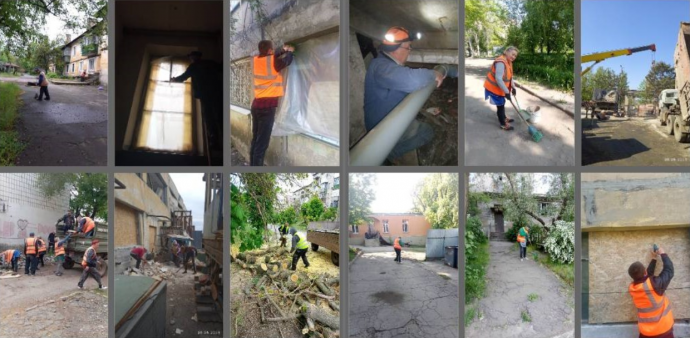 КП «Служба единого заказчика» продолжала работы по восстановлению жилья. «Закрываем поврежденные окна, ремонтируем подъезды, возобновляем коммуникации. Люди должны чувствовать себя в своих домах в безопасности», — говорят специалисты. Кроме того, они прочищали канализацию, заменяли водопроводные трубы, ремонтировали системы отопления и убирали придомовые территории.