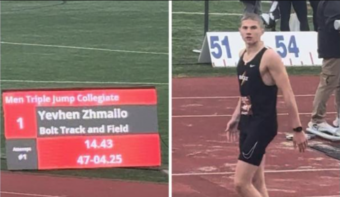 Напомним, в прошлый раз Евгений побил рекорд своей спортивной школы в тройном прыжке на соревнованиях штата Вашингтон в Америке.