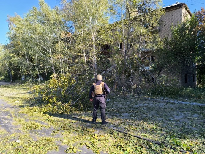 13.09.2025 в 11:30 произошел вражеский обстрел из ствольной артиллерии по городу Константиновке. В результате обстрела пострадавшие отсутствуют. Поврежден фасад многоквартирного дома.