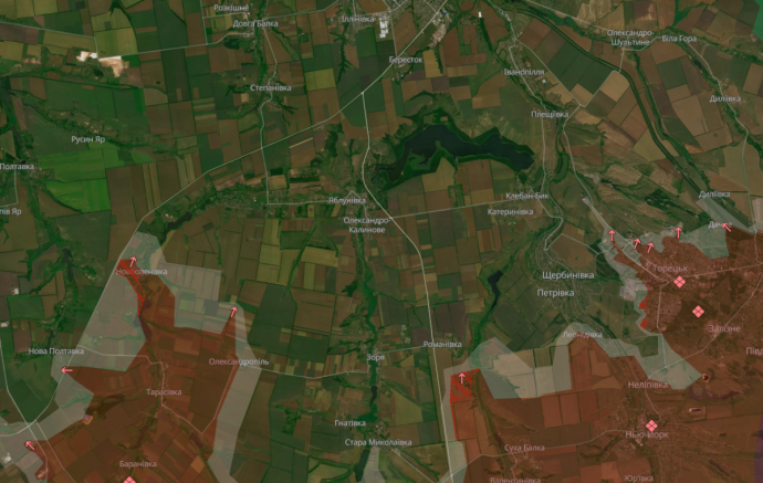 «Враг продвинулся в Торецке, возле Романовки и Новооленовки», — сообщили администраторы DeepState в ночном обновлении 13 мая.