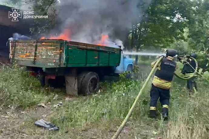 «В Константиновке ударный дрон попал в грузовой автомобиль посреди жилой застройки. В результате попадания транспортное средство охватило огонь и было уничтожено полностью», — отметили в ГСЧС.