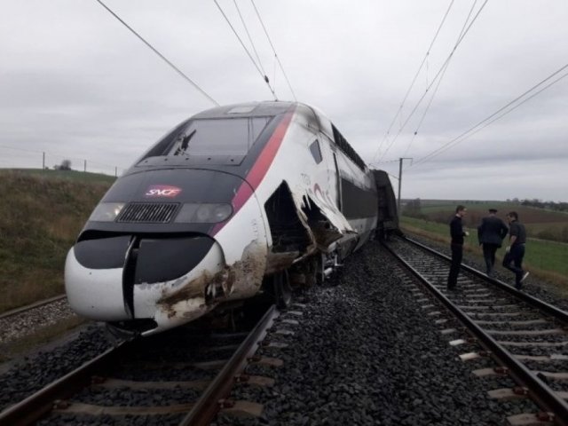 Отмечается, что на полном ходу сошел с рельсов скоростной поезд TGV сообщением Страсбург-Париж.