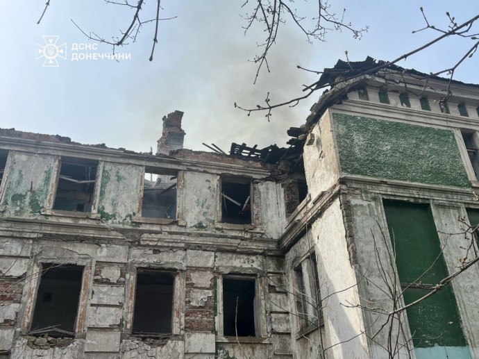 Сегодня российские оккупанты нанесли очередной удар по Константиновке. По информации спасателей, ударный беспилотник типа «Шахед» попал в трехэтажное административное здание.