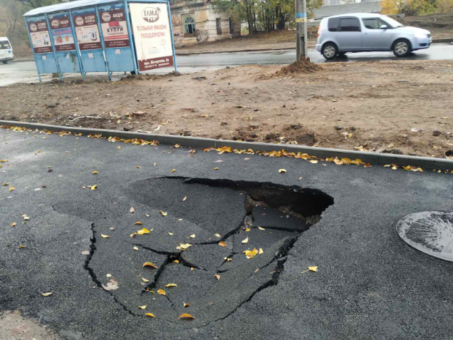 Иронию и сарказм относительно качества нового покрытия на пешеходной дорожке, пользователи сетей высказали сразу, как только были завершены ремонтные работы. Пару дней назад появился новый повод для разговоров – асфальт на тротуаре проломился и теперь здесь «красуются» дыры.