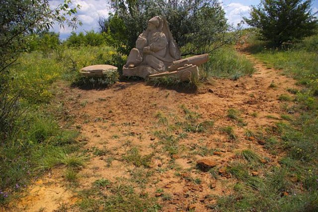 Скрывшись от полуденного солнца в тени раскидистой маслины на привал у большого казана присел отдохнуть казак-музыка с люлькой в руках и пушкой у ног, готовый в любой момент отразить вражеское нападение со всех сторон света.