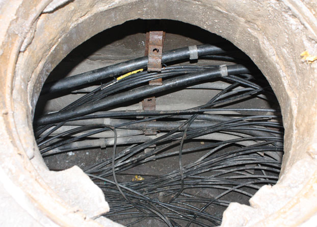 Неизвестны люди вынесли со двора хлам и сожгли его в колодце связи, полностью уничтожив телефонные кабеля.