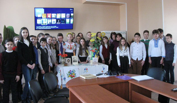 Шевченковские чтения в день рождения поэта организовали для шестиклассников Константиновского лицея библиотекарь ЦГПБ Людмила Ганнич и учитель Ирина Черник. Школьникам рассказали о детских годах Тараса, его самых известных произведениях.