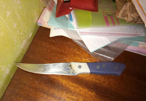 Получив такое сообщение правоохранители начали мощную работу. Сразу были опрошены соседи, отработанны места, которые человек посещал утром, но зацепок никаких не было. Между тем, проводив осмотр места происшествия, полицейскими, в спальне, был обнаружен нож, на котором едва заметны капли крови. Женщине ничего более не оставалось, как признаться в содеянном.