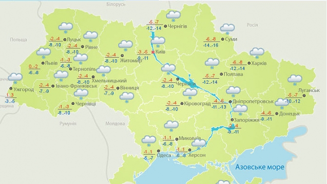 Погода на завтра: 6 января 2016 года на всей территории Украины ожидается снег, температура днем от -8 до +4.
