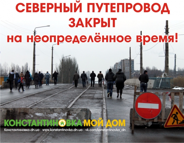 Около 16:30 в Константиновке экстренно прекращено движение транспорта по северному путепроводу. Дорогу перекрыли полицейский автомобиль и строительная техника, рабочие установили знаки.