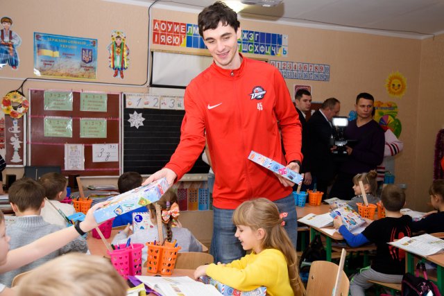 Школьники Донецкой области знают: сотрудники благотворительного Фонда и кумиры мальчишек – хоккеисты из клуба «Донбасс» всегда привозят подарки, сюрпризы и хорошее настроение. Ребята пригласили гостей на открытые уроки и утренники. Благотворители и хоккеисты участвовали в представлениях, общались с ребятами, проводили автограф-сессии и, конечно же, вручили всем шоколадные наборы.
