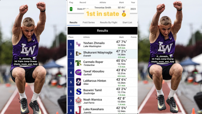24 мая на Чемпионате штата Вашингтон (США) по легкой атлетике состоялось событие, которое стало гордостью для Константиновской спортивной школы и всех ее воспитанников. Евгений Жмайло, талантливый спортсмен и ученик КДЮСШ Константиновки под руководством тренера Сергея Стрельца, установил новый личный рекорд и рекорд школы в тройном прыжке, прыгнув на внушительные 14 метров 52 сантиметра. Этот результат позволил Евгению занять первое место на соревнованиях, продемонстрировав его выдающиеся способности и упорство.