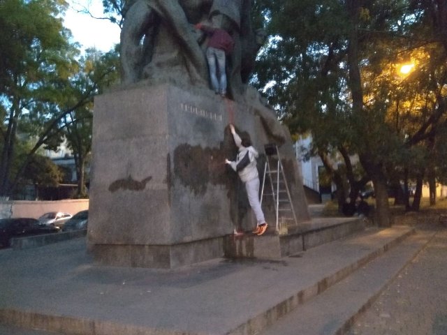 Комсомольцы города-героя Одессы во главе с руководителем комсомольской организации области Иваном Колотовичевым оперативно отреагировали на очередной акт вандализма в родном городе. Молодые коммунисты собрались, приехали и отмыли памятник героям Потемкинцам. Это сделали молодые коммунисты которые знают и чтят историю своей страны и никогда и никто не сможет сломать их дух и волю. Правда сильнее лжи и вандализма.