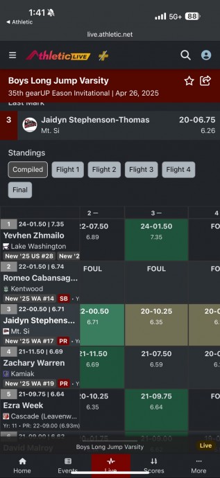 Обидва результати стали для спортсмена новими особистими рекордами, рекордами КДЮСШ та рекордами штату Вашингтон. Крім того,