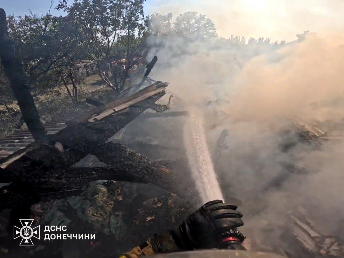«Ще один російський удар спричинив пожежу у двох господарчих спорудах і житловому будинку. Загальна площа займання — 150 квадратних метрів», — повідомляють рятувальники.