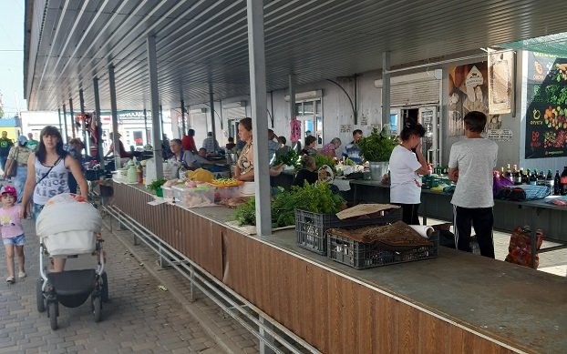 Похожая ситуация и на Центральном рынке. В выходные дни еще так-сяк, а в будние удобные прилавки под навесами полностью пустые. С пенсионеров берут всего пять гривень, но они упорно не хотят идти на рынок. Выстраиваются рядом с рынком, прямо у расположенных там небольших магазинов.