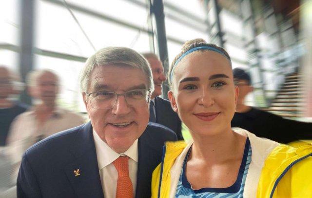 На фото Мария в г. Тиране (Албания) 12.06.2022г. с президентом Международного Олимпийского комитета Томасом Бахом и президентом Международного Олимпийского комитета Украины Сергеем Бубкой.
