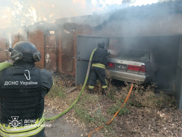 Як повідомили у Головному управлінні ДСНС України у Донецькій області, перша пожежа виникла вдень: вогонь охопив покрівлю господарської споруди площею 20 м² та суху траву. Завдяки злагодженим діям вогнеборців займання швидко ліквідували.