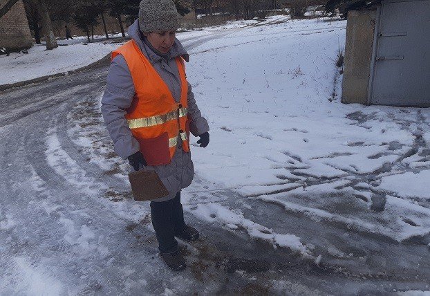 Вчера они чистили сыпавшийся несколько часов снег, сегодня вышли на посыпку скользких тропинок во дворах своих многоэтажек. Людмила из ЖЭО №1 живет на своем участке и хорошо знает, где нужно посыпать, чтобы было удобно ходить соседям. С 7:30 она обходит дом за домом и проводит посыпку.