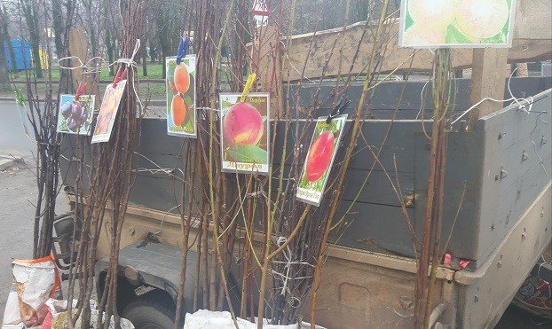 Журналисту ZI удалось найти саженцы только в одном месте на бульваре Космонавтов. Вишни, черешни, яблоки, абрикосы, персики и сливы и другие садовые деревца продают по 100 грн. По 50 грн предлагают большие кусты роз разных сортов и смородины.