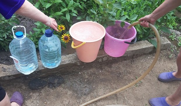 Кто-то носит ведра и канистры из колодцев, порой очень не близко, другие за чисто символическую плату набирают воду у соседей со скважиной.